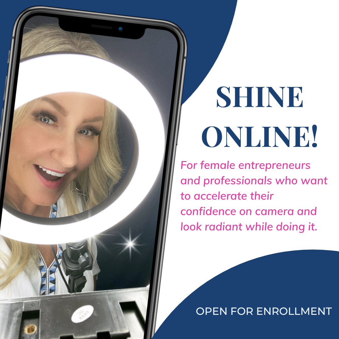Shine Online is a 2 week program for female entrepreneurs and professional women who have built success off-camera and want to learn how to get on camera fast and look polished doing it.